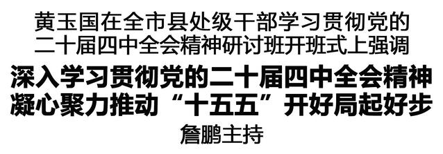 黃玉國(guó)指出,黨的二十屆四中全會(huì)是在向第二個(gè)百年奮斗目標(biāo)進(jìn)軍的新征程上舉行的一次十分重要的會(huì)議,審議通過(guò)了“十五五”規(guī)劃建議,擘畫(huà)了未來(lái)五年發(fā)展的宏偉藍(lán)圖,對(duì)于進(jìn)一步凝聚起全黨全國(guó)各族人民磅礴力量,為以中國(guó)式現(xiàn)代化全面推進(jìn)強(qiáng)國(guó)建設(shè)、民族復(fù)興偉業(yè)而團(tuán)結(jié)奮斗,具有重大意義。要把學(xué)習(xí)貫徹黨的二十屆四中全會(huì)精神,同學(xué)習(xí)貫徹習(xí)近平總書(shū)記在研討班上的重要講話精神貫通起來(lái),同學(xué)習(xí)貫徹習(xí)近平總書(shū)記在河南考察時(shí)重要講話精神和關(guān)于河南工作的重要論述結(jié)合起來(lái),牢牢把握“全面深刻準(zhǔn)確”的重要要求,吃透精神實(shí)質(zhì)、結(jié)合實(shí)際貫徹,全力以赴把全會(huì)部署轉(zhuǎn)化為推動(dòng)周口發(fā)展的生動(dòng)實(shí)踐。