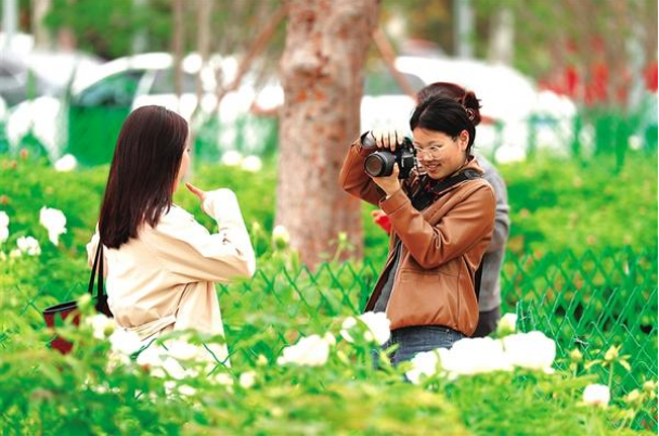 清明小長(zhǎng)假期間,周口植物園內(nèi)牡丹競(jìng)相綻放,粉、白、紫、紅、黃等各色牡丹嬌艷欲滴,吸引市民紛至沓來,在花海中打卡拍照,享受春日休閑時(shí)光。