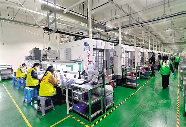 位于西華縣的昌盛年產2000萬套智能零部件項目,主要生產手機、電腦配套五金和納米注塑制品。目前該項目已投產試運營,項目全部投產達效后,將實現年納稅500萬元以上,帶動就業(yè)800人以上。圖為工人正在加工訂單產品。