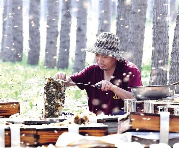 3月31日上午,西華縣李大莊鄉(xiāng)的潁河岸邊,來自遲營鎮(zhèn)的蜂農在金黃的油菜花、粉嫩的桃花花海中放蜂采蜜,在春光花影中迎來一年中最忙碌的時節(jié)。