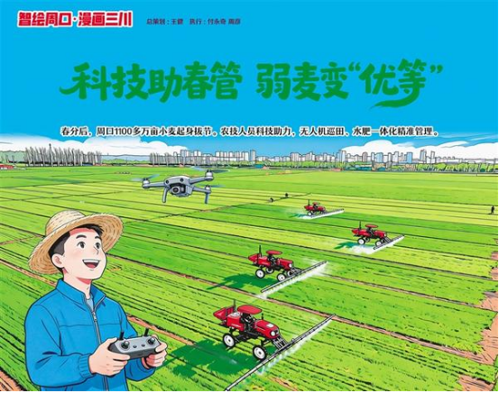 春分后,周口1100多萬(wàn)畝小麥進(jìn)入起身拔節(jié)期,農(nóng)技人員依托科技開(kāi)展精準(zhǔn)春管。