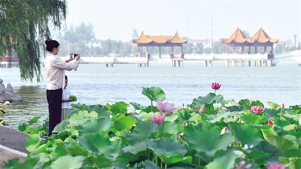 6月15日,在淮陽(yáng)龍湖國(guó)家濕地公園,一朵朵盛開(kāi)的荷花嬌艷欲滴,這是今夏龍湖首批綻放的荷花。