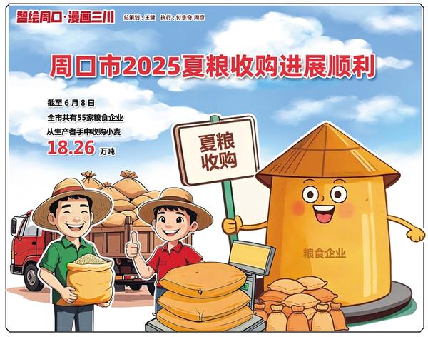 夏收期間,周口市多措并舉保障糧食收購工作。全市統(tǒng)籌30個(gè)政策性收儲庫點(diǎn),為夏糧收購騰出14.8億斤倉容;利用市、縣、鄉(xiāng)、村四級儲備糧輪換機(jī)制,新增6億斤倉容。