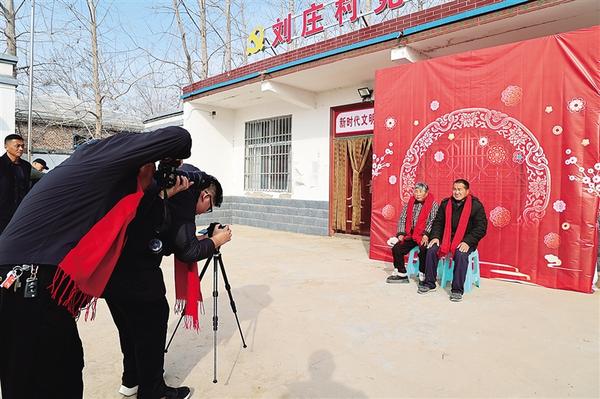 1月21日,攝影師為村民拍攝照片。當天,周口日報社攜手周口市攝影家協(xié)會,到淮陽區(qū)馮塘鄉(xiāng)劉莊村開展慰問活動。此次活動不僅為村民免費拍攝夫妻照與全家福照,還向村民贈送了春聯和羊毛圍巾,為他們送上濃濃的祝福。