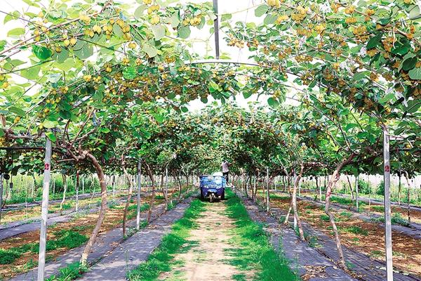 “每枝留果4—5個(gè),間距15厘米,弱枝果、畸形果必須摘除!科學(xué)疏果能讓養(yǎng)分集中,糖度提升2度以上,精品果率超80%?!笔⑾牡泥惓强h城郊鄉(xiāng)王樓村,連片獼猴桃架下碩果累累,陽光穿透藤蔓在地面投下斑駁光影,村民羅明同正在按照科技特派員的要求疏果、定果。