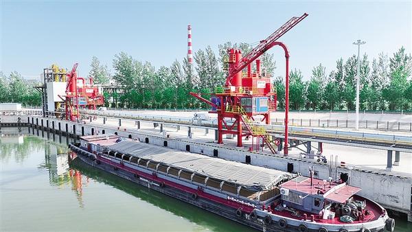 今年一季度,我市港口生產(chǎn)實現(xiàn)“開門紅”,周口港貨物吞吐量達(dá)到1427萬噸,同比增長76.33%,集裝箱吞吐量完成4.96萬標(biāo)箱,同比增長56%。圖為4月23日,一艘裝滿糧食的貨船正停靠在碼頭等待卸糧。