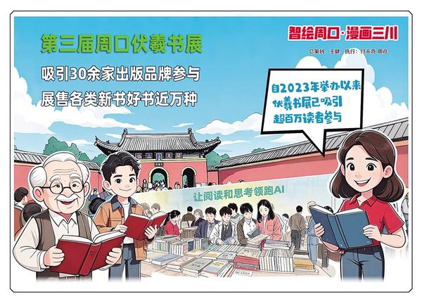 龍湖碧波映羲陵,時代書香沁古城。近日,第三屆周口伏羲書展從淮陽移師周口中心城區(qū),繼續(xù)開展專場展銷活動。本屆書展以“讓閱讀和思考領跑AI”為主題,聚焦“閱讀價值升維”,重點展售經典人文、認知提升、深度思考類圖書。