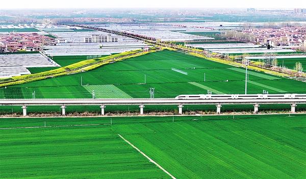 4月11日,一列高鐵列車駛過扶溝縣境內廣袤的麥田。近年來,扶溝縣累計建成高標準農田119.7萬畝,疏浚治理河道64公里,維修重建閘涵33座,為實現穩(wěn)產增收提供了堅實保障。