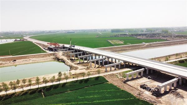 建設大道東延項目完工后,將有效改善周口市中心城區(qū)交通狀況,提升城市形象,促進地方經濟社會高質量發(fā)展。圖為4月14日,正在緊張施工的建設大道東延項目新運河橋工程。