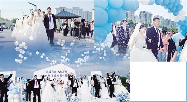 為慶祝新中國(guó)成立75周年,大力推進(jìn)移風(fēng)易俗,倡導(dǎo)新型婚育文化,9月24日,以“家國(guó)同慶、見證幸?!睘橹黝}的2024年項(xiàng)城市集體婚禮在該市吉祥湖公園舉行。當(dāng)天,來自不同行業(yè)、不同崗位的12對(duì)新人喜結(jié)連理,用實(shí)際行動(dòng)爭(zhēng)做文明新風(fēng)的倡導(dǎo)者、踐行者、推動(dòng)者。圖為集體婚禮現(xiàn)場(chǎng)。 ...[詳細(xì)]