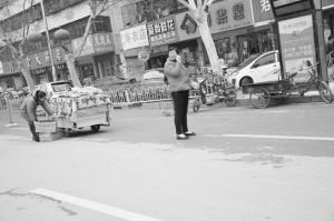 圖① 中心城區(qū)每個(gè)路口都存在不同程度的攔車散發(fā)傳單現(xiàn)象,既不文明又不安全。