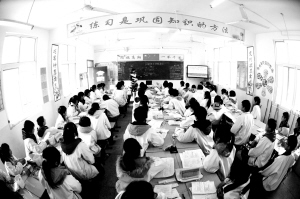 評價是羲城中學進行課改推進的有力工具,與培訓一樣,羲城中學的每一項制度都有評價。在教學質量的評價方面,該校采取節(jié)節(jié)清的教學方法,根據學科的不同,有單元清、章清、周清、月清,通過形式多樣的“清”來提高學生的整體學習質量。課堂教學評價主要看學生的主動性、積極性、參與性、探究性、展示性在課堂教學中是否能得到有效激發(fā)和表現,以學生在課堂中的熱情度作為考察教師課堂教學成功的主要因素。在課堂改革過程中,教師們會遇到各種各樣的問題,有共性的、有個性的,對于這樣的問題,教師及時提出來通過教研組進行解決,如果解決不了,學校成立課題研究小組幫助解決。該校規(guī)定,每月每位教師都要根據自己的教學實際寫一篇教育教學論文,可以是課堂實錄,可以是教學反思,也可以是針對教學過程中的問題進行的研究結果等等,作為提升業(yè)務素質的方式。