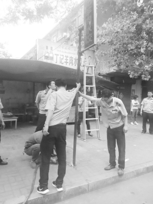 ?、偃诵械郎想S意安置的廣告牌被依法切除。