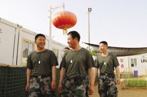 中國維和部隊(duì)首次配備單兵“身份識別牌” 5月26日,在馬里加奧維和任務(wù)區(qū),佩戴著“身份識別牌”的中國維和部隊(duì)成員值勤歸來。與以往不同的是,新一批維和官兵胸前,都佩戴著一個(gè)用中、英、法三種文字標(biāo)記姓名、血型、籍貫和編號信息的“身份識別牌”。這是中國維和部隊(duì)根據(jù)執(zhí)行維和任務(wù)需求,首次為官兵配備單兵“身份識別牌”。 新華社發(fā)