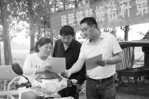 項城市秣陵鎮(zhèn)積極做好夏季秸稈禁燒工作,實行班子成員包片、機關(guān)干部包村、村組干部包戶責任制,全力構(gòu)筑了秸稈禁燒“防火墻”。圖為6月8日該鎮(zhèn)干部在李閣村向過往群眾發(fā)放禁燒宣傳單。(張永久 攝)