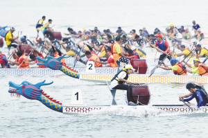6月14日,選手們?cè)诒荣愔小?月13日,馬來西亞沙巴州首府哥打基納巴盧舉行第二屆沙華堂國際龍舟賽,迎接即將到來的中華民族傳統(tǒng)節(jié)日——端午節(jié)。