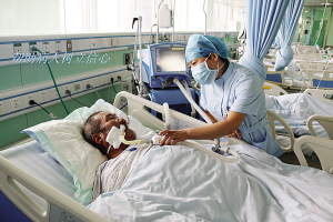 當然,護理工作并非一帆風順。眾所周知,ICU收治的都是重癥患者,患者大多數(shù)都有精神障礙,譫妄、昏迷、煩躁不安等狀況很常見,這就需要護士們充滿耐心和愛心。張衛(wèi)華以實際行動詮釋人間大愛。2014年8月,科室里來了一名Ⅱ級肝性腦病的男性患者,已經(jīng)精神錯亂且不認人,行為非常危險。由于該病不能使用鎮(zhèn)靜藥物,當責任護士靠近患者時,患者拿起床頭柜上的一個玻璃瓶向護士砸去。作為護士長的張衛(wèi)華見此情景,臨危不懼,用自己的身軀保護責任護士。只聽見啪的一聲,鮮血順著她的臉頰流了下來,可她還是慢慢走向那名患者,輕聲向他解釋情況以安撫其情緒?;颊叩那榫w漸漸地穩(wěn)定下來,她才去處理傷口,并輕松地說:“只要沒傷著病人就好。”有一次,科室里來了一名心梗住院的老人,老人的孩子都在外地,得知老人生病住院也沒趕回來照顧,甚至連一句問候都沒有。老人除了要忍受著病痛的折磨,還要忍受對孩子們的思念。張衛(wèi)華見此情景,非常心疼,為安慰老人,上班期間她都會去陪老人聊天,哄老人開心。老人吵著不舒服的時候,張衛(wèi)華用藥緩解,同時耐心安撫老人。晚上老人因為孩子的事情,會像一個小孩兒一樣哭泣不止,張衛(wèi)華心疼地陪在老人身邊,一遍又一遍地安慰說:“別害怕,我在您身邊,我就是您的女兒?!?/P>