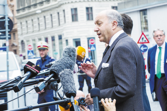新一輪伊核問題談判在維也納舉行 6月27日,在奧地利首都維也納,法國外交部長法比尤斯在舉行新一輪伊核問題談判的柯堡宮殿酒店外接受記者采訪。當日,伊朗核問題六國、歐盟與伊朗在奧地利首都維也納柯堡宮殿酒店展開新一輪磋商。