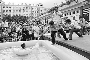 廣東省惠州市教育局高度重視學校和學生的安全管理工作,在全市預(yù)防學生溺水安全專項活動中,創(chuàng)新教育形式,開展防溺水“體驗式”教學。圖為惠州市教育局在南山學校舉辦全市中小學防溺水體驗式教學觀摩現(xiàn)場會,惠州志愿者救撈隊示范通過立式人鏈智救溺水者。 袁曙文 攝