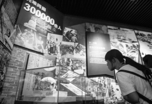 ?、?nbsp;7月12日,觀眾在中國人民抗日戰(zhàn)爭紀(jì)念館觀看“南京大屠殺”的相關(guān)史料。
