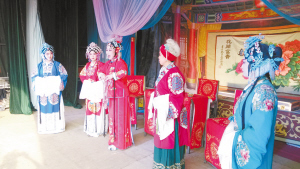 演出現(xiàn)場,臺上,演員唱腔優(yōu)美(如圖);臺下,看戲群眾被演員精彩的表演深深吸引,不時還跟著唱上幾句,熱烈的掌聲和叫好聲不絕于耳。