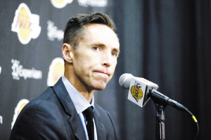 當(dāng)?shù)貢r間3月24日,納什在新聞發(fā)布會上。當(dāng)日,洛杉磯湖人隊(duì)球員斯蒂夫·納什召開新聞發(fā)布會,就退役一事回答記者提問。納什于21日通過網(wǎng)絡(luò)宣布了自己退役的消息。新華社發(fā)