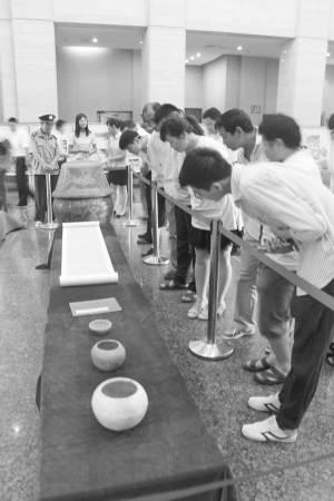 3年前,馬偉花了1萬多元在西華縣買了一件藏品——明代坐化缸?!半m然我花了一些錢,但是私人收藏總不如讓大家共同欣賞,所以我把它捐贈給市博物館?!瘪R偉說。